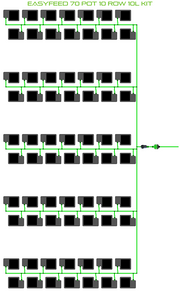 The ALIEN EasyFeed 70 Pot 10 Row Kit is available in 4 pot sizes. Easy to configure and assemble with advanced features and setup options including the ability to create an aisle in the middle of rows for complete plant access, grow 70 plants to perfection while bottom-feeding with scheduled dry-backs with this ALIEN EasyFeed Kit!